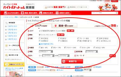 検索結果の画面では、特徴・時間帯・給与など、さらに細かく検索できます。